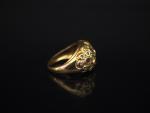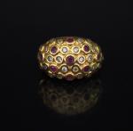 Bague d&me en or jaune, serti d'un pavage de diamants et de pierres roses. TDD. 55 Poids tel. 8,46 g