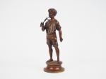 LAVERGNE. "le joueur de fifre au lézard" Sujet en bronze à patine médaille Signé H. 32 cm (petit manque sur la terrasse)