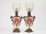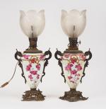 Paire de lampes à pétrole Napoléon III en porcelaine à...