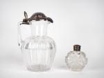 Verseuse en cristal, argent et vermeil, poincon Minerve on y joint un flacon à sels XIXème en cristal et argent.