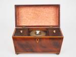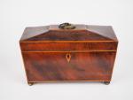 Boite à thé Charles X en placage d'acajou fileté de citronnier. Dim. 18 x 28 x 14 cm (état moyen)