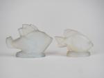 SABINO. 2 différents sujets en verre moulé opalescent "poissons"