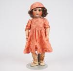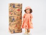 Poupée francaise de fabrication SFBJ moule 301, tête porcelaine, bouche ouverte, vêtements en partie anciens circa 1930. Corps en composition, articulé. Rangée dans une boite de poupée Clélia.