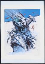 ENKI BILAL. '32 décembre'. Lithographie tirée de l'album 'Andeuxmilleun', signée et numérotée 364/301. Dim. 60 x 49 cm.