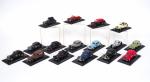 Lot de miniatures récentes au 1/43ème, de diverses marques : certaines de séries Presse en boite cristal, d'autres sur socle : 21 boites cristal et 16 dont série Traction sur socle.
