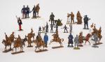 Lot de figurines de plastique Historex et Mokarex, ils sont peints et en état d'usage, Ier Empire, au total environ 25 pièces, on y joint un carton de vrac mokarex en état d'usage avec accidents environ 25 pièces