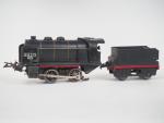 HORNBY. Ecartement O. Locomotive 020 avec tender électrique, état moyen.