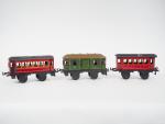 BING. Ecartement I. 3 petites voitures voyageur, état moyen, un toit refait