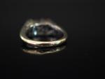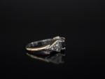 Bague en or blanc 750, sertie en son centre d'un saphir épaulé de part et d'autre de six petits diamants. TDD. 51 Poids tel. 6,93 g