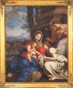 Ecole XVIIème, Entourage de Jacques STELLA (1506 - 1657). "L'offrande de Cerises". Huile sur toile. Dim. 100 x 79 cm. (Restaurations).