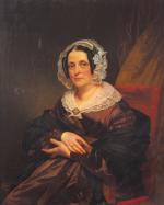 Luigi RUBIO. "Portrait de dame à la robe de soie parme". Grande huile sur toile, signée en bas à gauche et datée 1841. Dim. 101 x 81 cm.