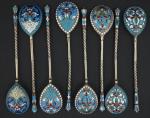 Collection de huit petites cuillères à thé en argent et émail cloisonné. Moscou, 1896-1899.