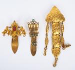 3 éléments de chatelaine fin XIXème - début XXème en métal doré et cabochons de...