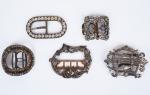 5 différentes boucles de ceintures en métal et strass dont une de style Art Nouveau.