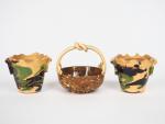 Paire de petits cache-pots en faïence d'Apt en terre mêlée.