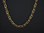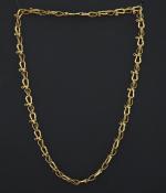Collier en or jaune 750, composé de maillons en forme de poulies. Long. 52,5 cm Poids. 49,15 g