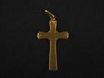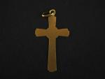 Pendentif de style Art déco en forme de croix en or jaune 750, agrémenté de motifs géometriques. 2,8 x 1,7 cm Poids. 0,98 g