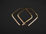 Paire de créoles de forme losangique en or jaune 750. 4 x 4,5 cm Poids. 1,85 g (l'une présentant un enfoncement)