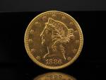 Pièce de 5 Dollars or, 1886. FRAIS ACHETEURS 10% HT.