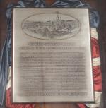 Grande plaque en métal argenté offerte par le Standard oil company of Louisana à Dieudonné Costes, et célébrant l'attachement à la capitale de la vieille Europe et l'accueil de la Nouvelle Orléans pour ces deux aviateurs intrépides.