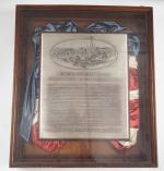 Présentée encadrée sous verre sur fond de drapeau tricolore.