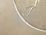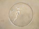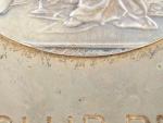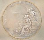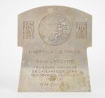 Médaille en argent de l'Aéroclub de France. Sur une plaque en métal argenté gravée : l'Aéro club de France à René Lefèvre "Traversée aérienne l'Atlantique Nord Old Orchard-Santander Paris. 13.14 juin 1929".
