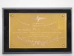 Plaque en bronze doré et gravé de la mention : "Hommage de la colonie francaise du Paraguay aux aviateurs Costes et Le Brix qui après avoir traversé l'Atlantique d'un seul vol le 14 octobre 1927 sont venus à Assomption apporter le salut de la France".