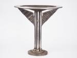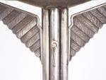 Grand trophée d'aviation de style Art Déco en bronze argenté et martelé décoré d'un point d'interrogation faisant référence au nom de l'avion des deux pilotes francais COSTES ET BELLONTE. ayant réalisé la première liaison aérienne Paris New-York en 1930.