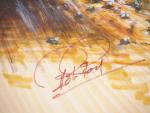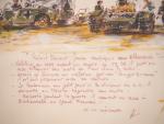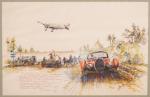 Gouache originale représentant "Robert Benoit faussant compagnie aux allemands" Signée en bas à droite. Dim. 36 x 56 cm