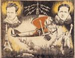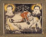 Impression, tapisserie en velours commémorant la première traversée de l'Atlantique par Costes et Bellonte. Dim. 48 x 63 cm