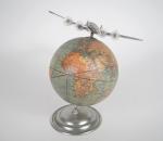 Globe terrestre et avion en aluminium. Dim. 32 x 26 x 24 cm