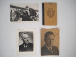 Lot de 4 photographies du pilote dont une de chez Harcourt et une avec envoi autographe à sa mère.
