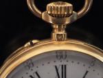 Cadran à chiffres romains pour les heures et arabes pour les minutes.