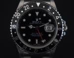 Cadran noir, index et aiguilles luminescents, trotteuse centrale, indication du second fuseau horaire par aiguilles centrale, date à guichet, signé